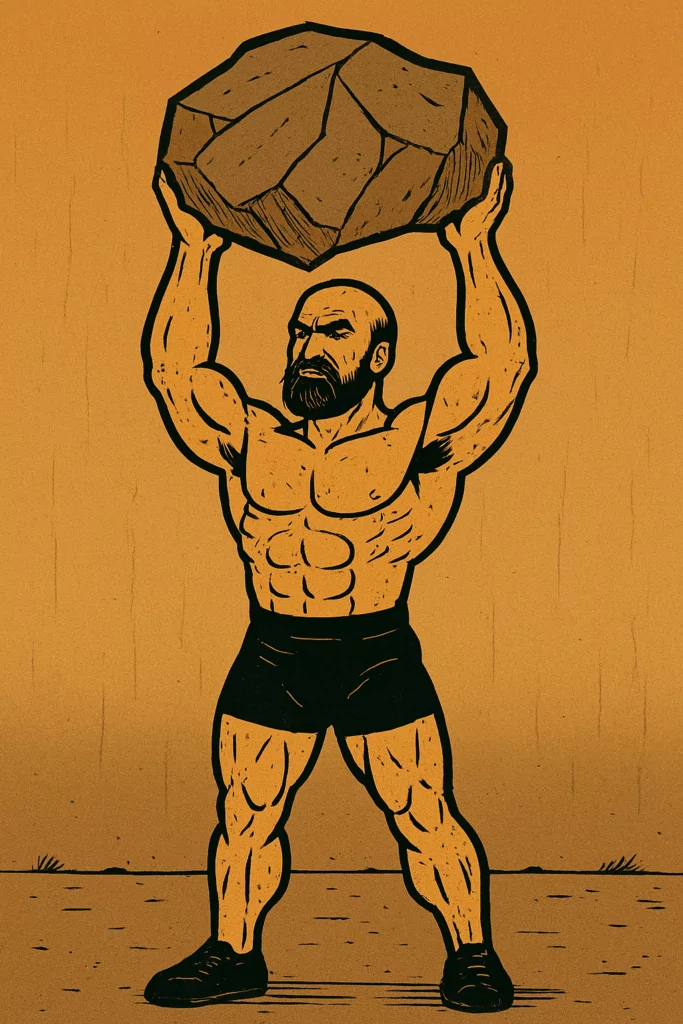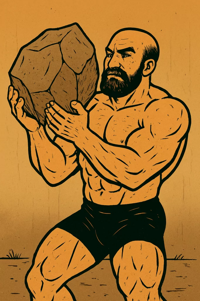 - Kreuzheben: Ebenfalls mit dem Stein – eine simple, aber hocheffektive Übung für Rücken und Beine.